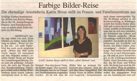 Thüringer Allgemeine Zeitung - 08.05.2008 Bericht von der Vernissage im Frauen- und Familienzentrum Arnstadt/Thüringen am 07.05.2008